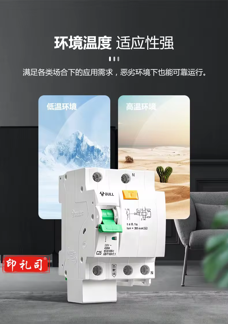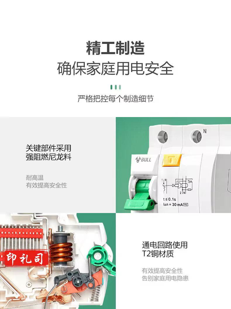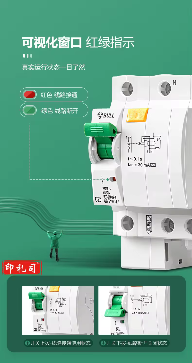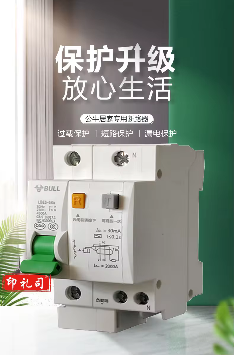 公牛(BULL)空气开关LBE5-63A系列2P漏电保护断路器 双进双出 C型电子式C32
