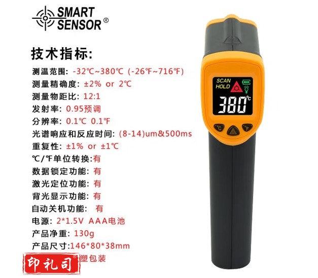 希玛测温枪工业红外测温仪高精度油温计家用厨房烘培水温油温枪AR320+