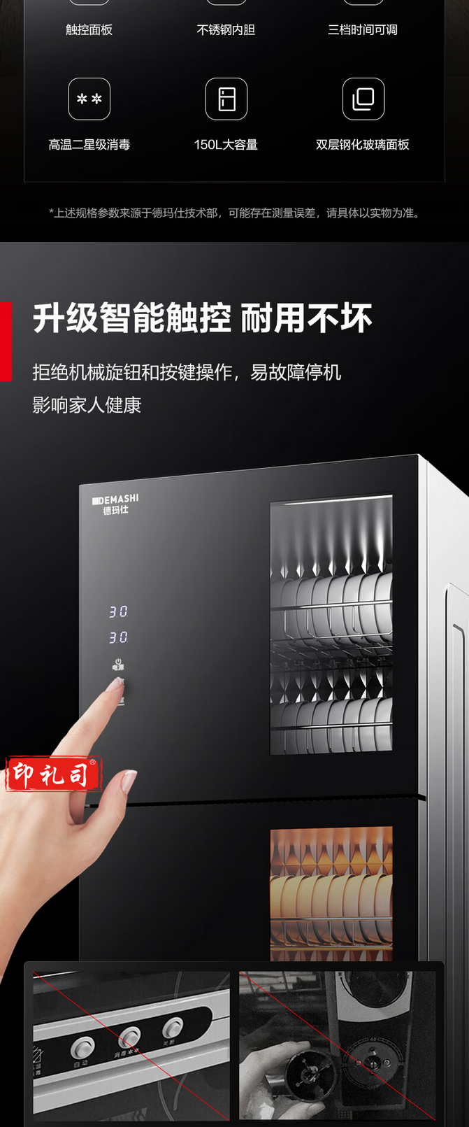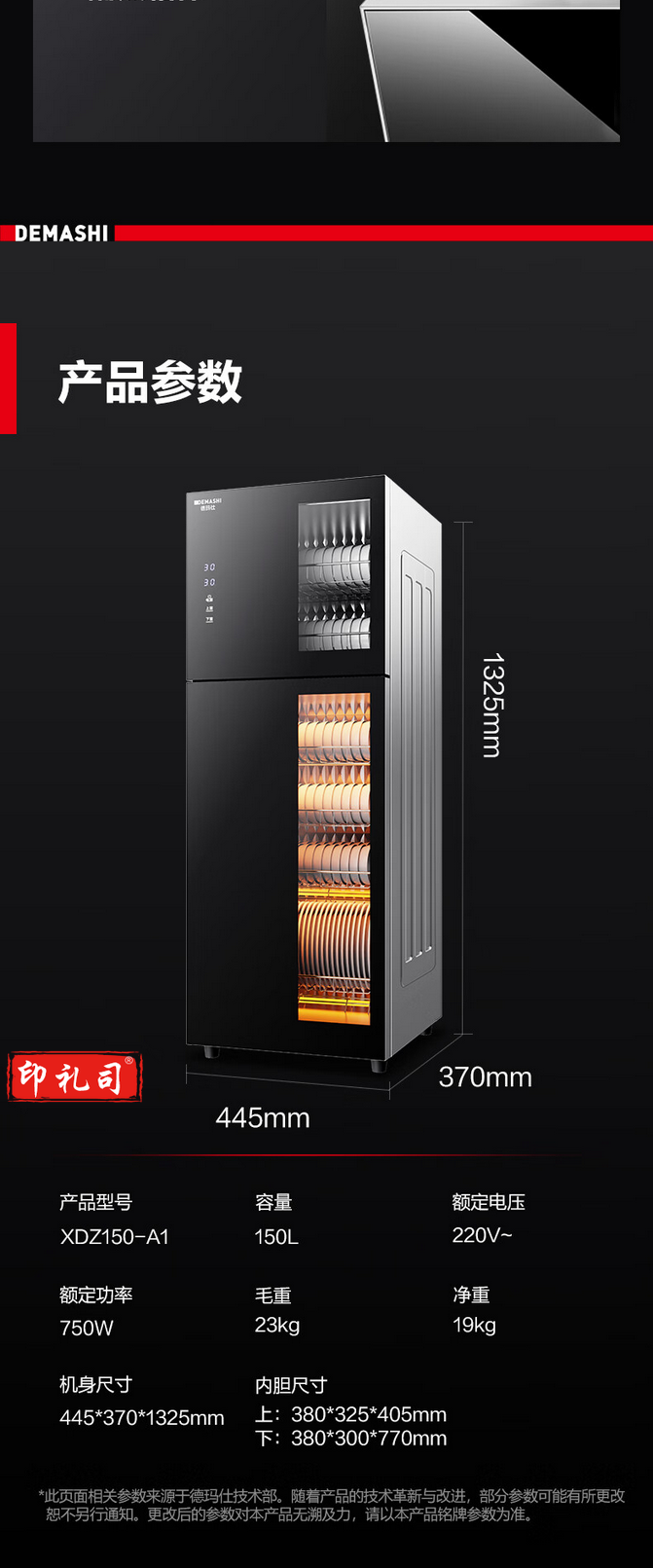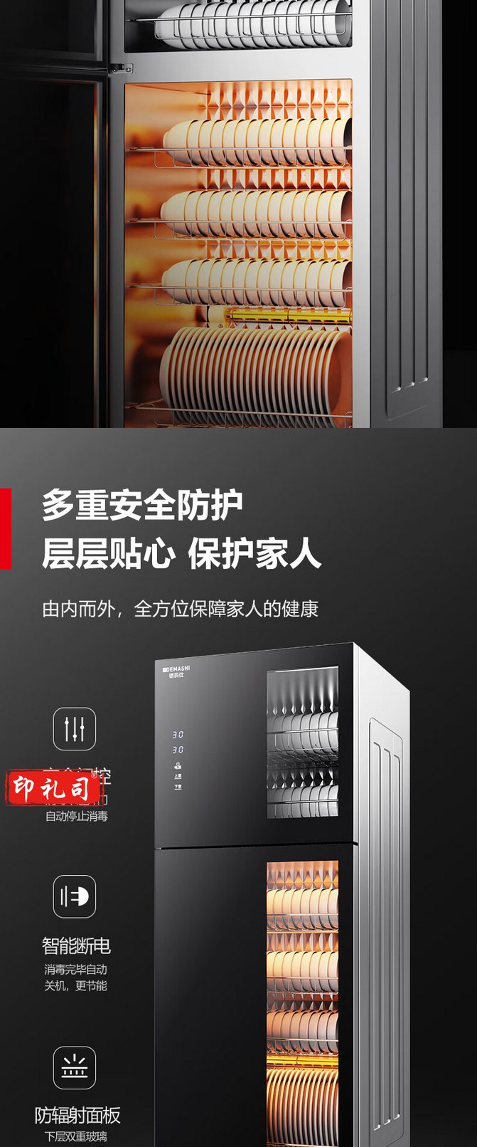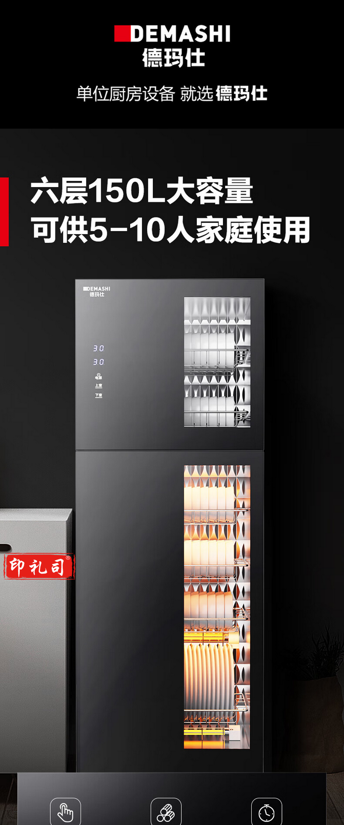德玛仕(DEMASHI) 茶杯消毒柜 立式高温 茶杯柜 大容量双开门 XDZ150-A1【145升5层架】