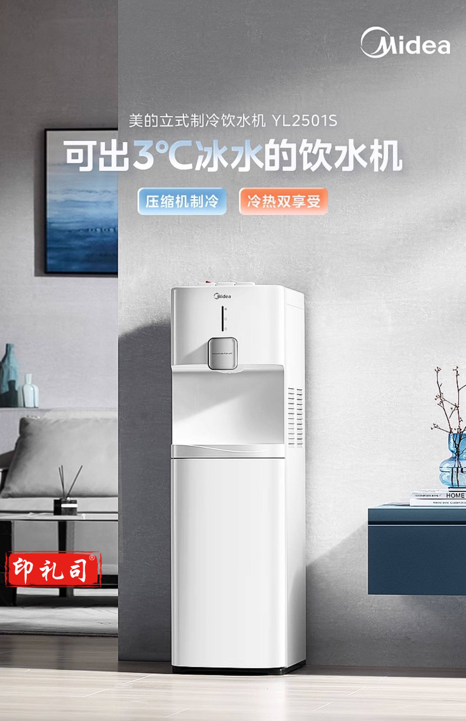 美的(Midea)饮水机家用 制冷水机 茶吧机 非制冰机下置式国家补贴 YL2501S【压缩机制冷3度冰水】