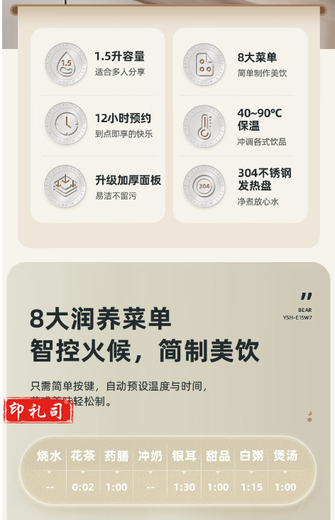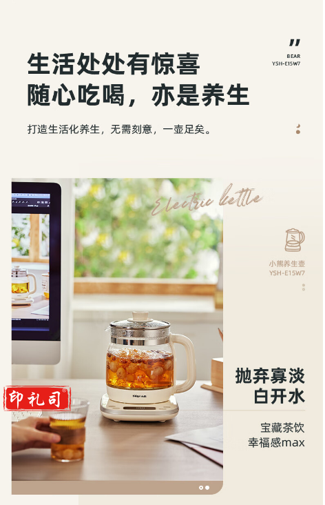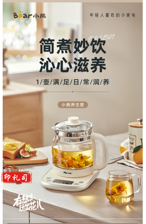 小熊(Bear) 1.5L煮茶壶烧水壶 可拆卸茶篮 煮茶器电水壶 恒温电热水壶 保温花茶壶 YSH-E15W7