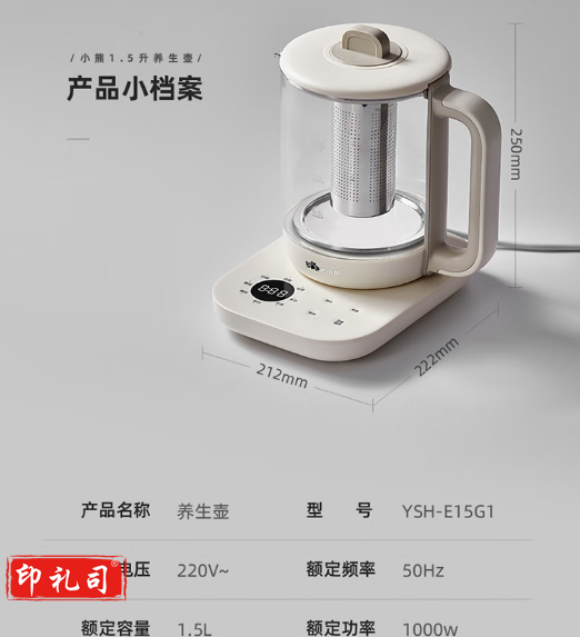小熊(Bear) 煮茶器 电水壶 热水壶 煮茶壶 恒温电热水壶 迷你玻璃花茶壶 1.5L 烧水壶