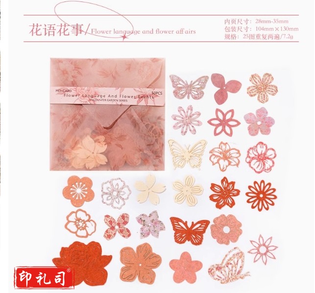 镂空手帐材料包复古蝴蝶花朵扎包手账diy拼贴装饰素材纸花语花事-50张