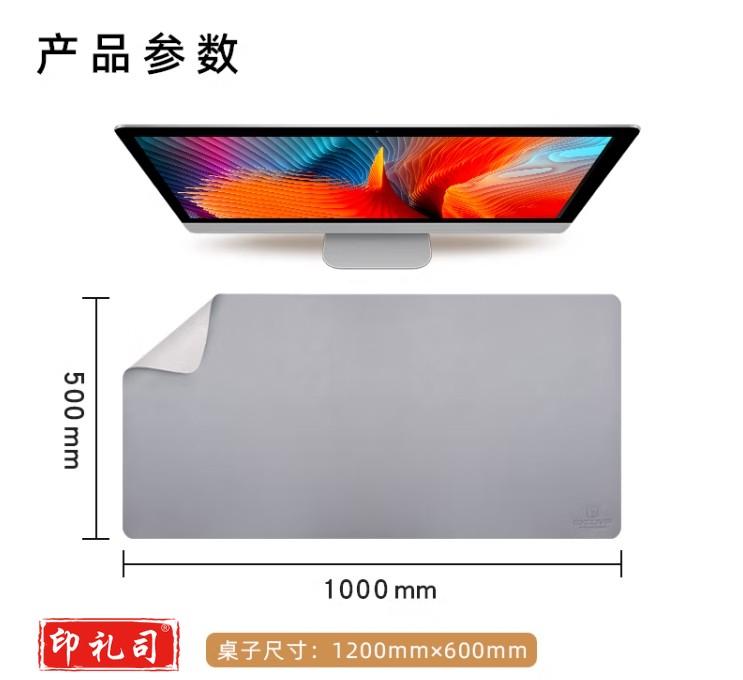 宜适酷(EXCO)1米鼠标垫超大号桌垫 100*50cm 电脑办公桌垫皮质桌垫大鼠标垫防水皮革桌布书桌垫写字游戏键盘垫灰色9540 皮革+绒布
