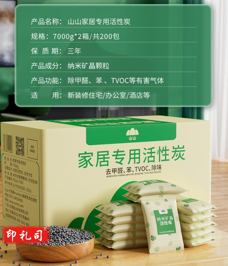 山山活性炭除甲醛炭包14kg除异味装修新房急住新车除味炭包光触媒防潮