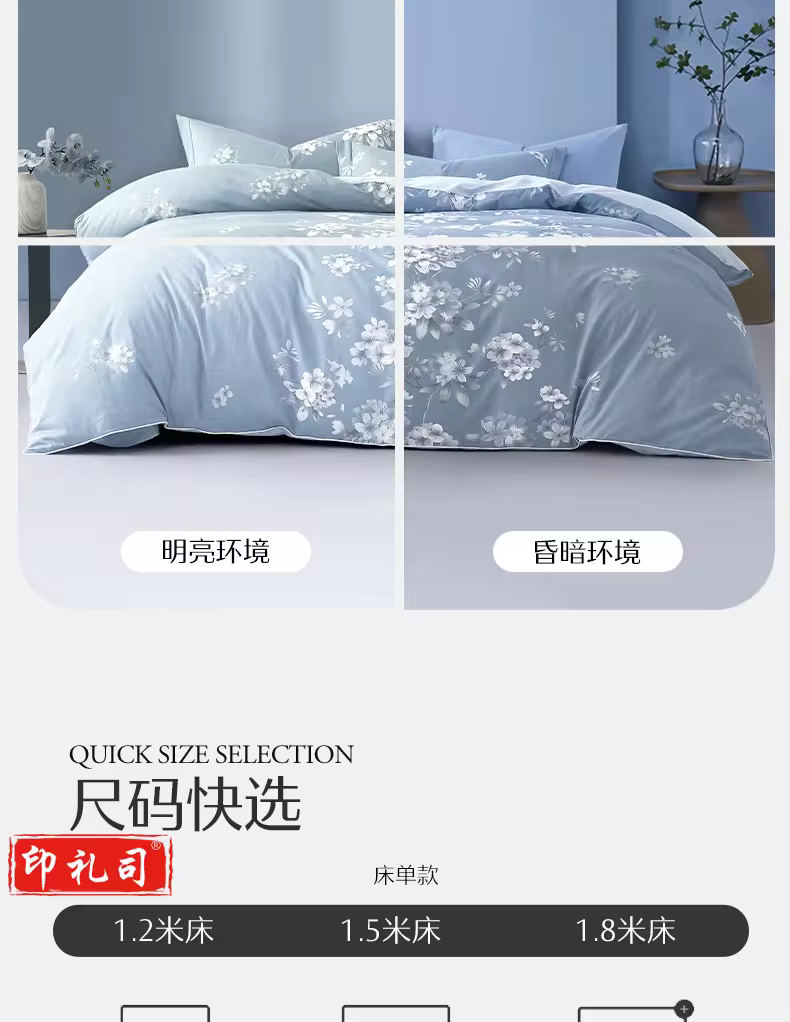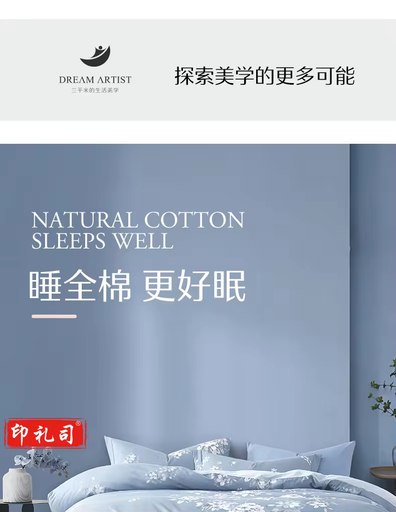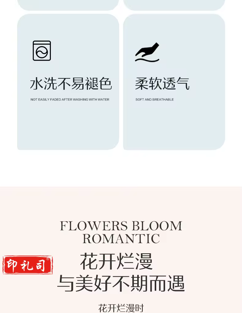 水星家纺床上四件套纯棉100%纯棉被罩全棉被套床单四件套1.8x2米床ins风 [纯棉亲肤]花卉系列 花西雅