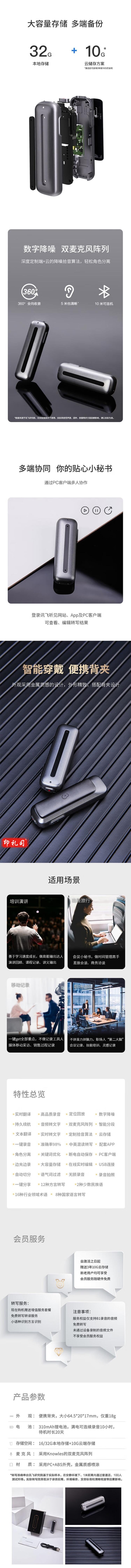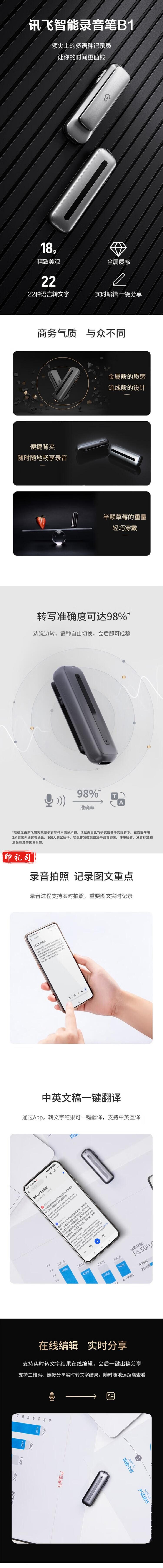 科大讯飞智能录音笔B1 免费录音转文字 智能降噪中英互译录音神器 随身小巧便携专业录音设备录音机