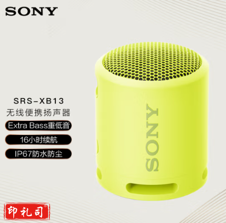 索尼(SONY)SRS-XB13 蓝牙音箱 迷你便携 重低音16小时续航 户外音箱 IP67防水防尘 柠檬黄