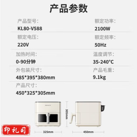 九阳(Joyoung)空气炸锅焱烤双热源 内外全金属炎烤8L大容量4档风速可调无油低脂煎炸V588