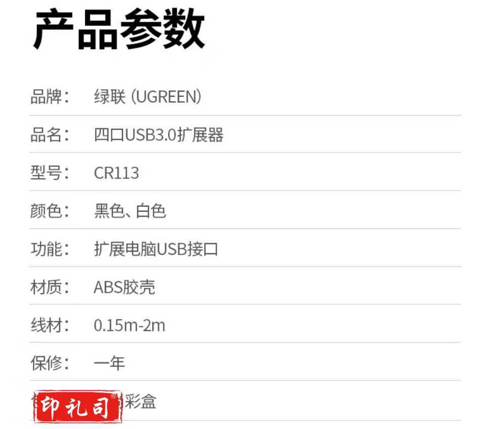 绿联 USB-C分线器 高速拓展4口3.0HUB集线器延长线 一拖四多接口扩展坞转换器 USB款 黑色1.5M 30218