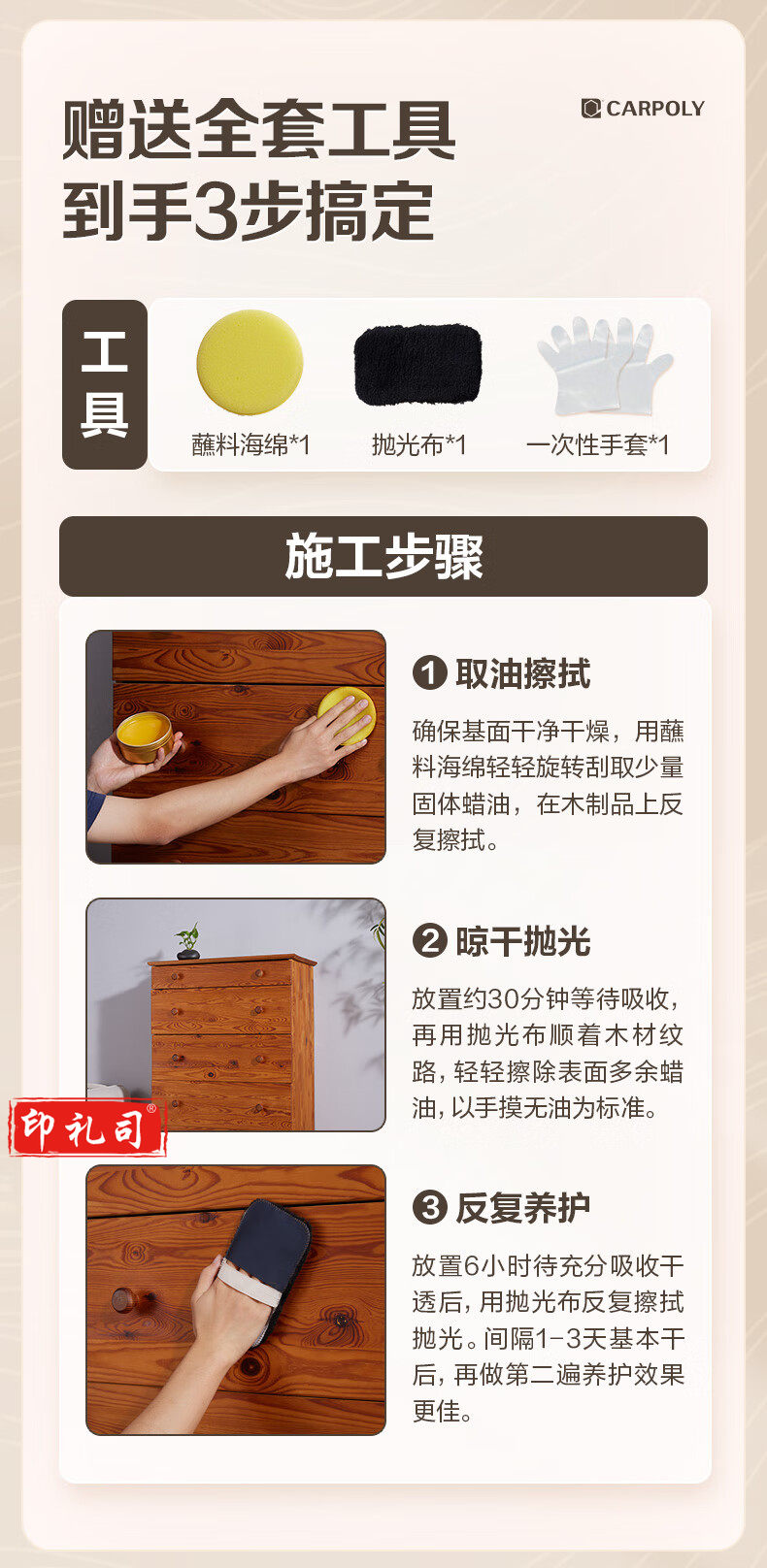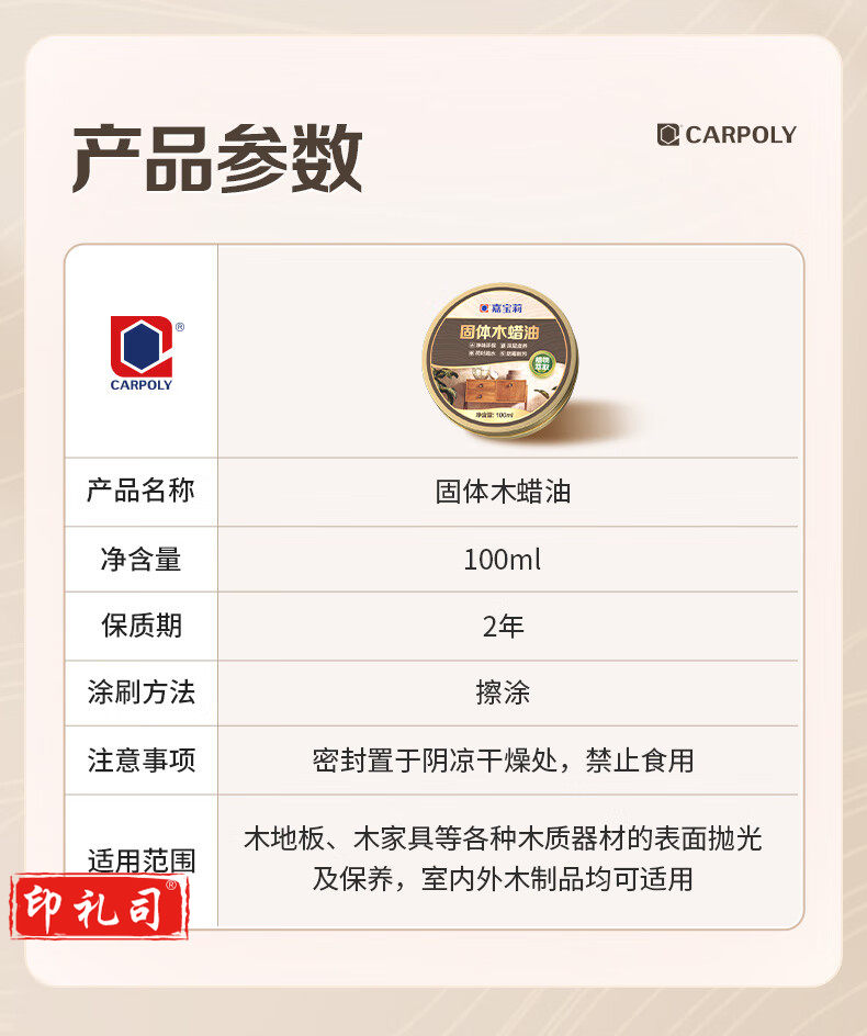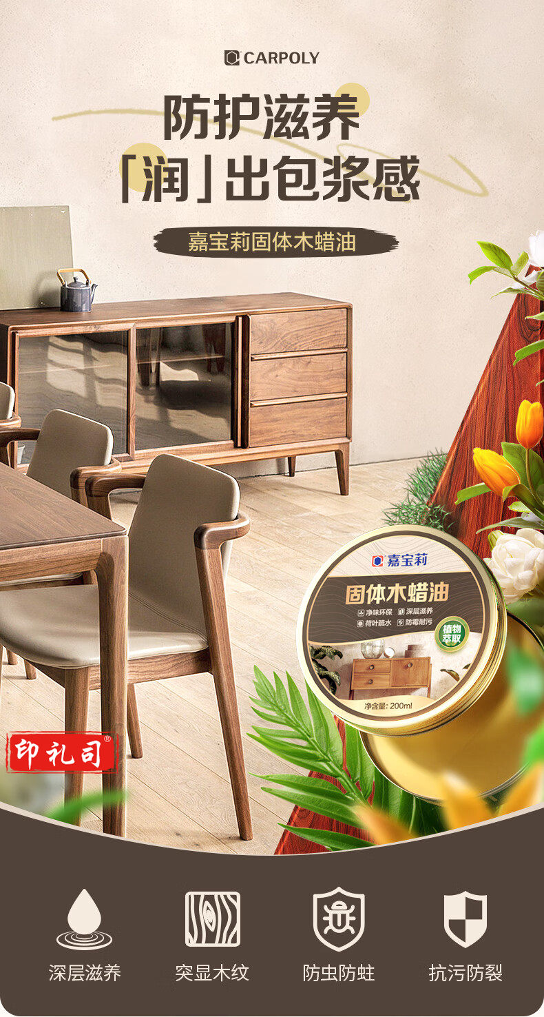 嘉宝莉(CARPOLY)固体木蜡油清漆实木蜂蜡抛光打蜡红木保养专用蜡地板家具蜡100ml