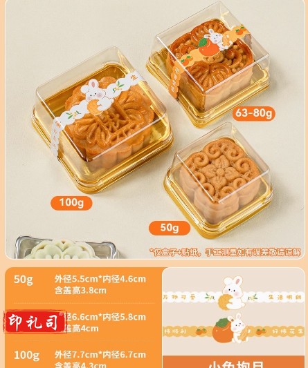 月饼盒【金色方形】送小兔抱月贴纸【50g】*100套