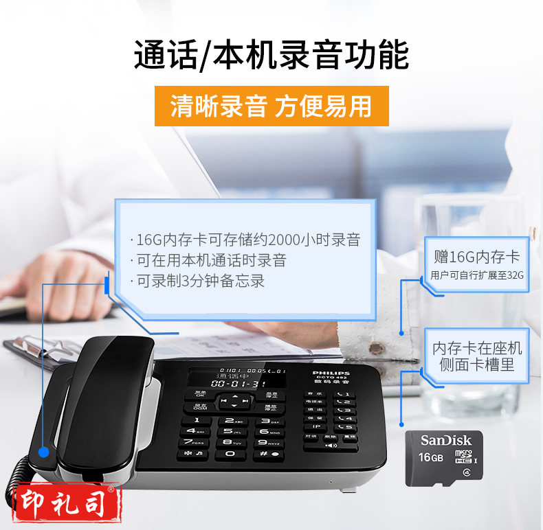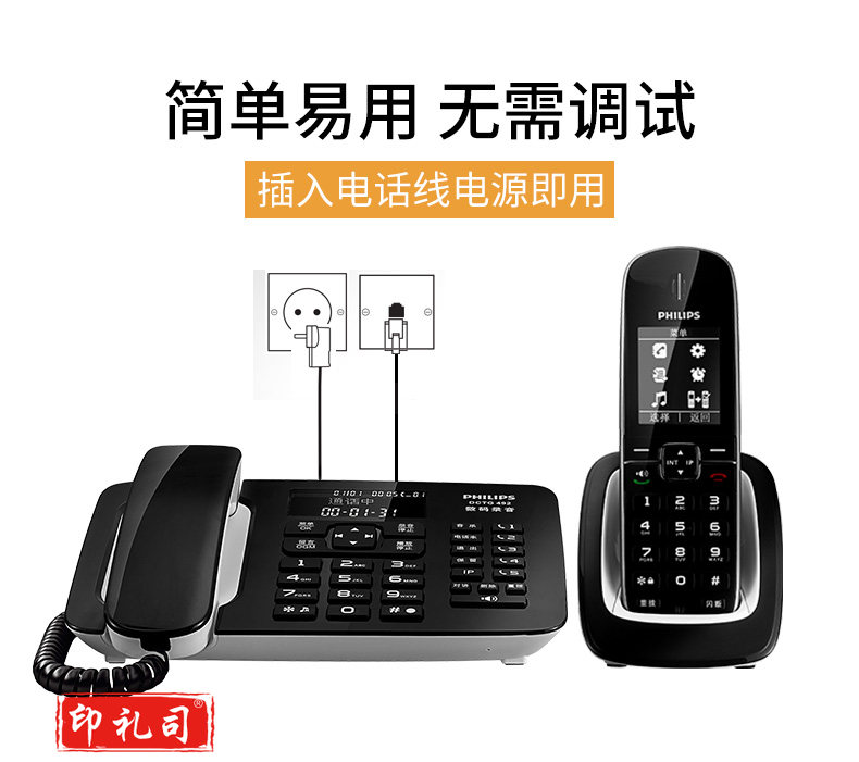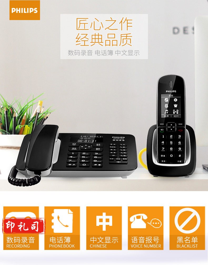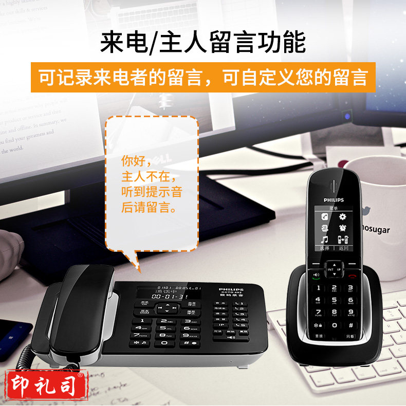 飞利浦DCTG492 数字无绳电话机座机子母机 黑色