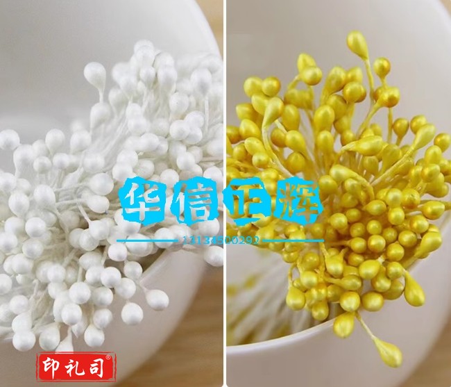 花蕊扭扭棒仿真花芯彩色珠光白色黄色花心手工diy配件 花蕊黄色白色各一扎(约300根)