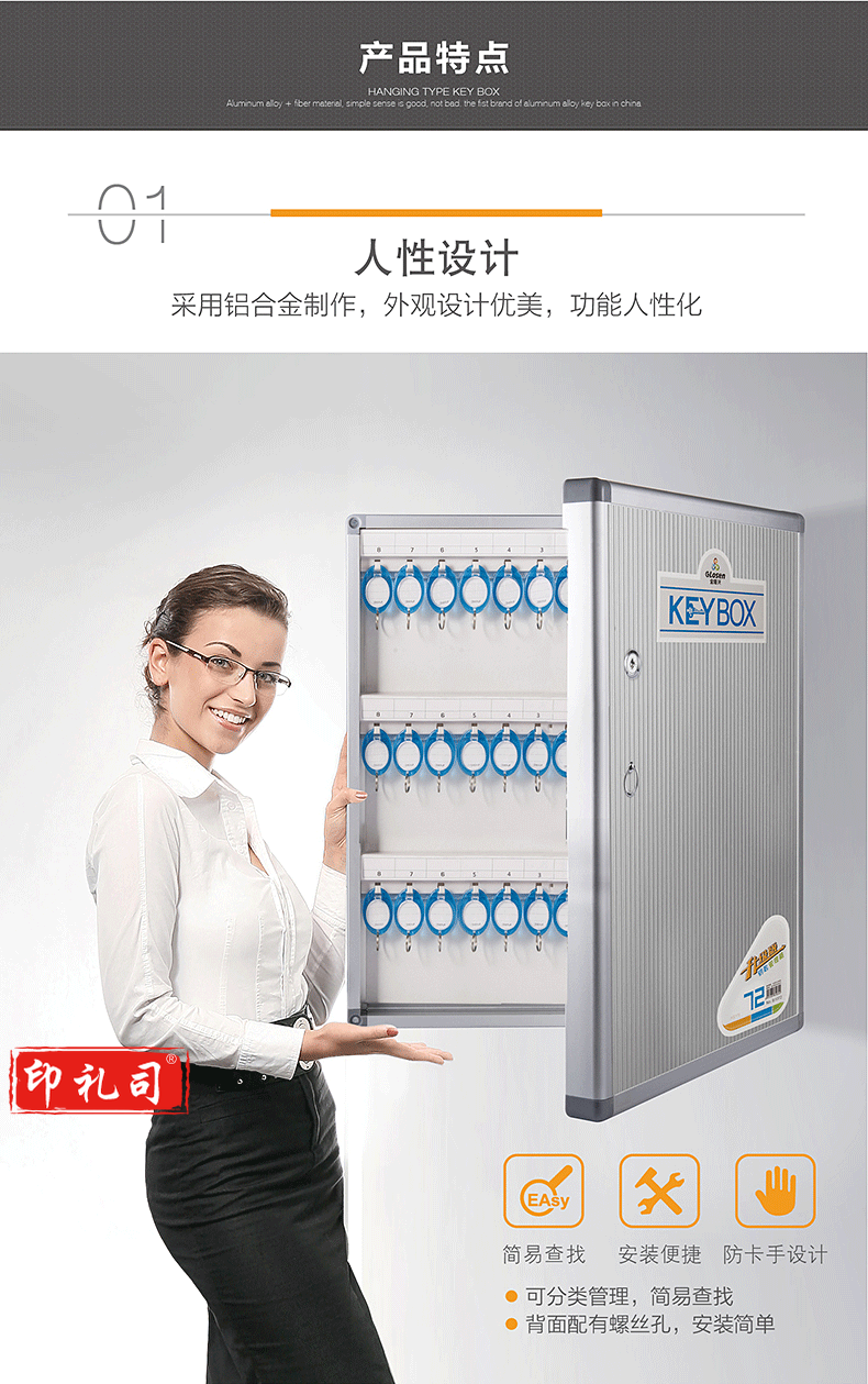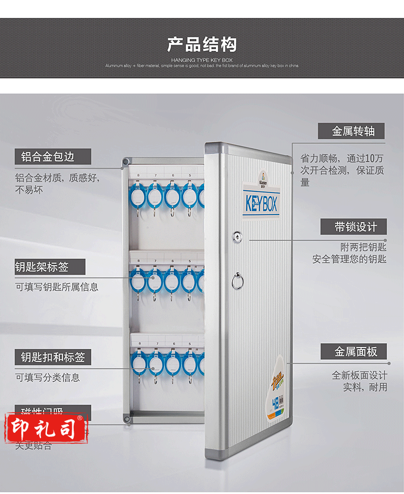 金隆兴 24位钥匙柜钥匙箱带锁 铝合金钥匙收纳钥匙管理箱/钥匙盒/应急钥匙柜壁挂/含钥匙牌 B1024