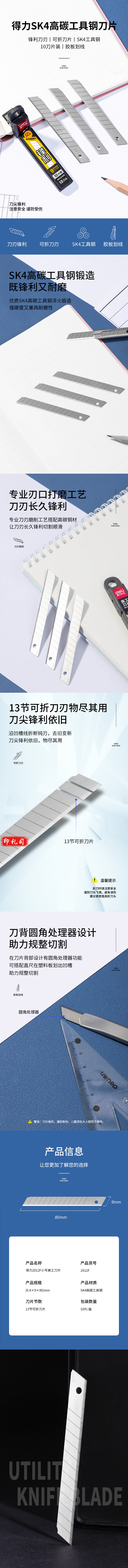 得力2012F小号锋利型美工刀片(银色)(10片/盒)