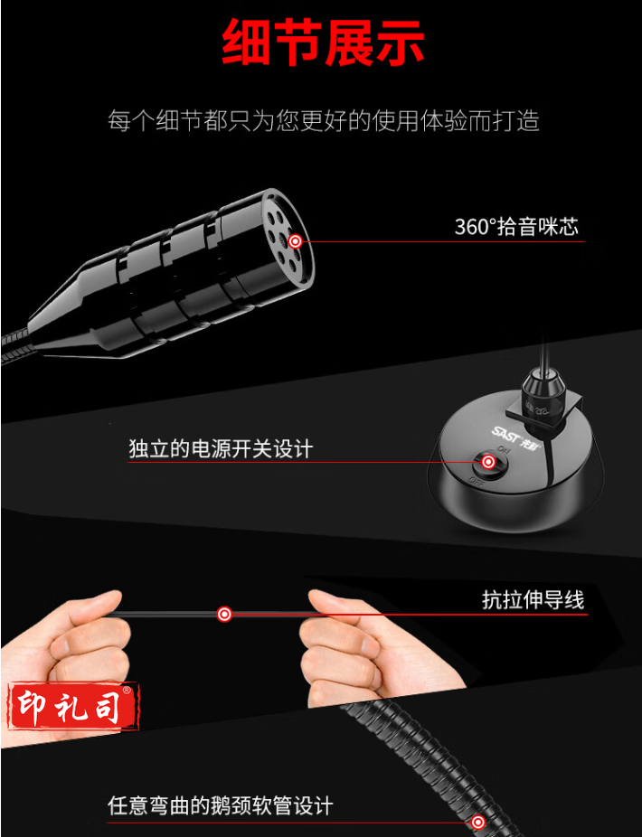 先科 MAE039【2米线长】麦克风电脑鹅颈话筒有线台式电脑笔记本桌面网课视频会议游戏语音录音直播音圆孔039