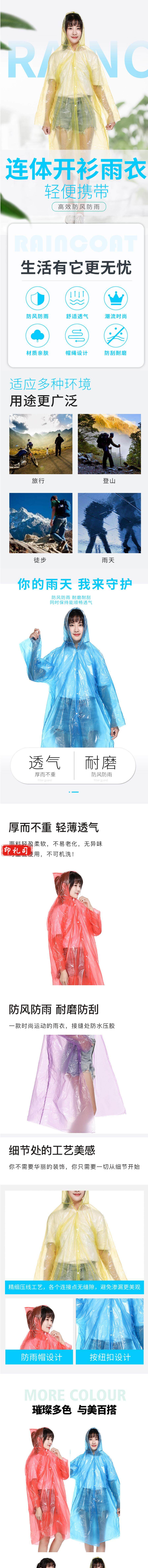 谋福 172成人四合扣雨衣PE连体开衫雨衣10件/包 单件价格