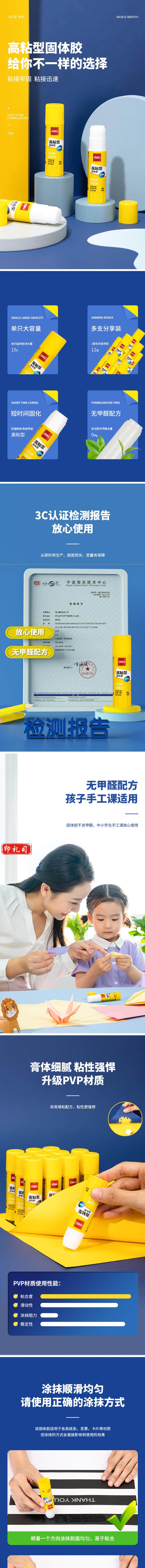 得力(deli)15g高粘度固体胶棒 PVP固体胶水 无甲醛快干耐用胶棒7090