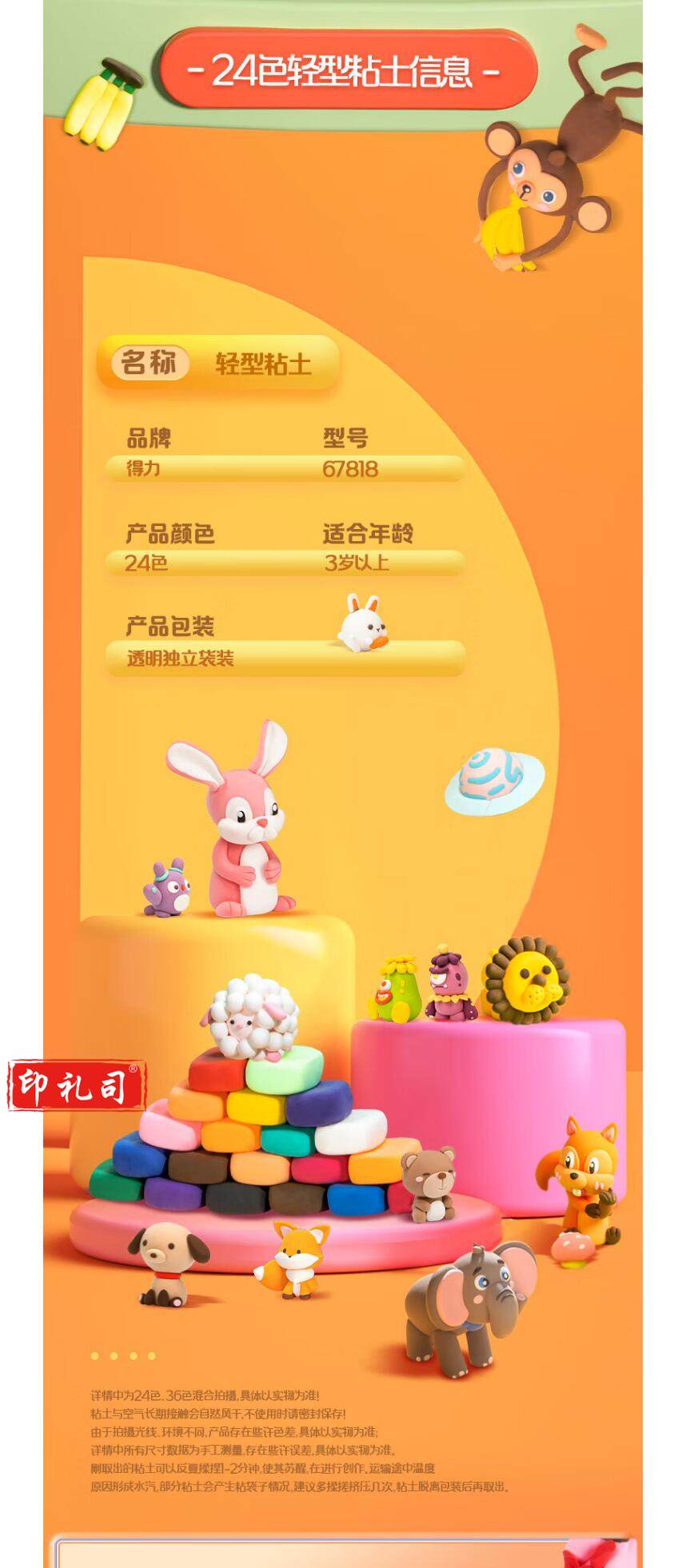 得力(deli)24色超轻粘土 儿童玩具生日礼物黏土彩泥橡皮泥 美术手工DIY制作太空沙 袋装新年礼物 67818