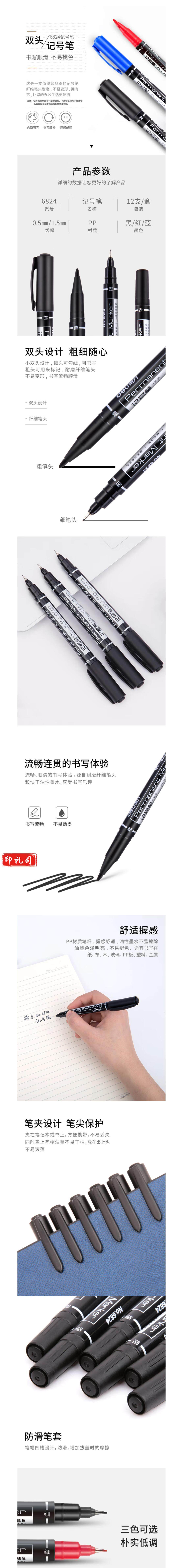 得力6824 小双头黑色记号笔 单支价格(12支/盒)
