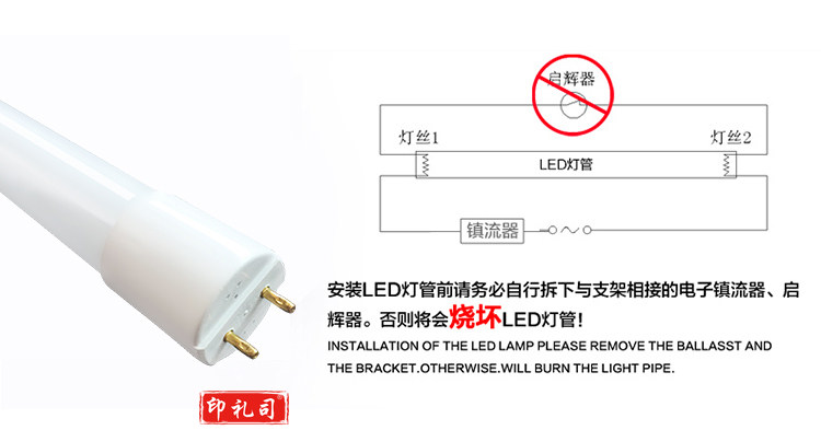 灯管LED双端长1.2米 18W日光色 6500K 白光