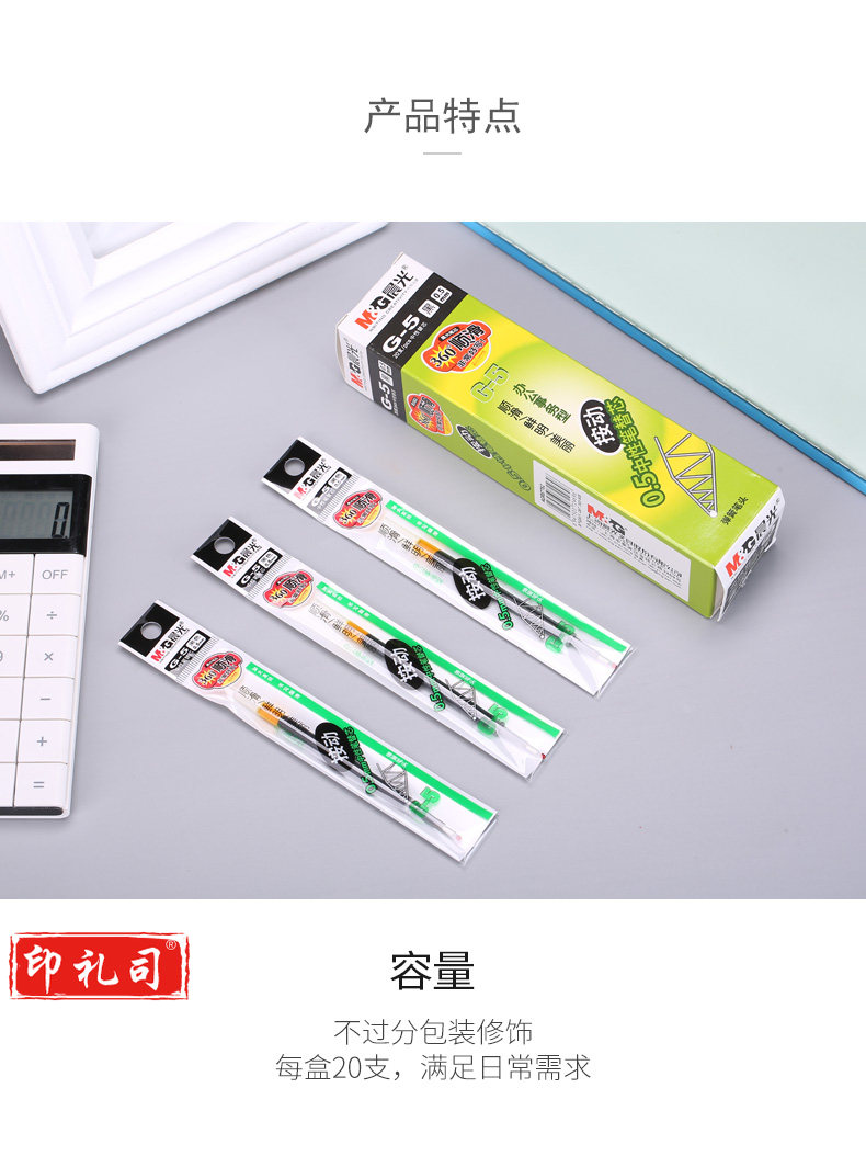 晨光 G-5 按动笔芯替芯 0.5 黑色1008/K35/S01/S08适用 20支/盒 请整盒下单
