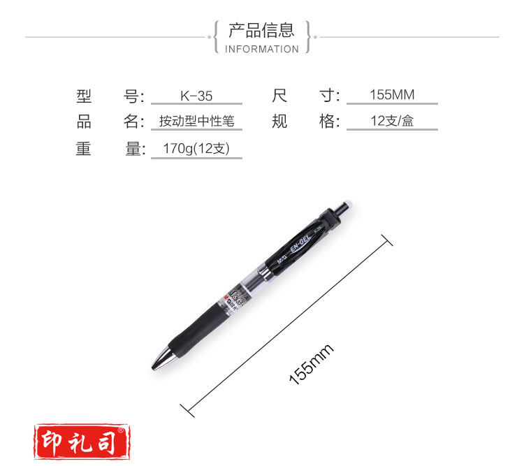 晨光K35A黑色0.5mm经典子弹头中性笔按动签字笔水笔 12支/盒