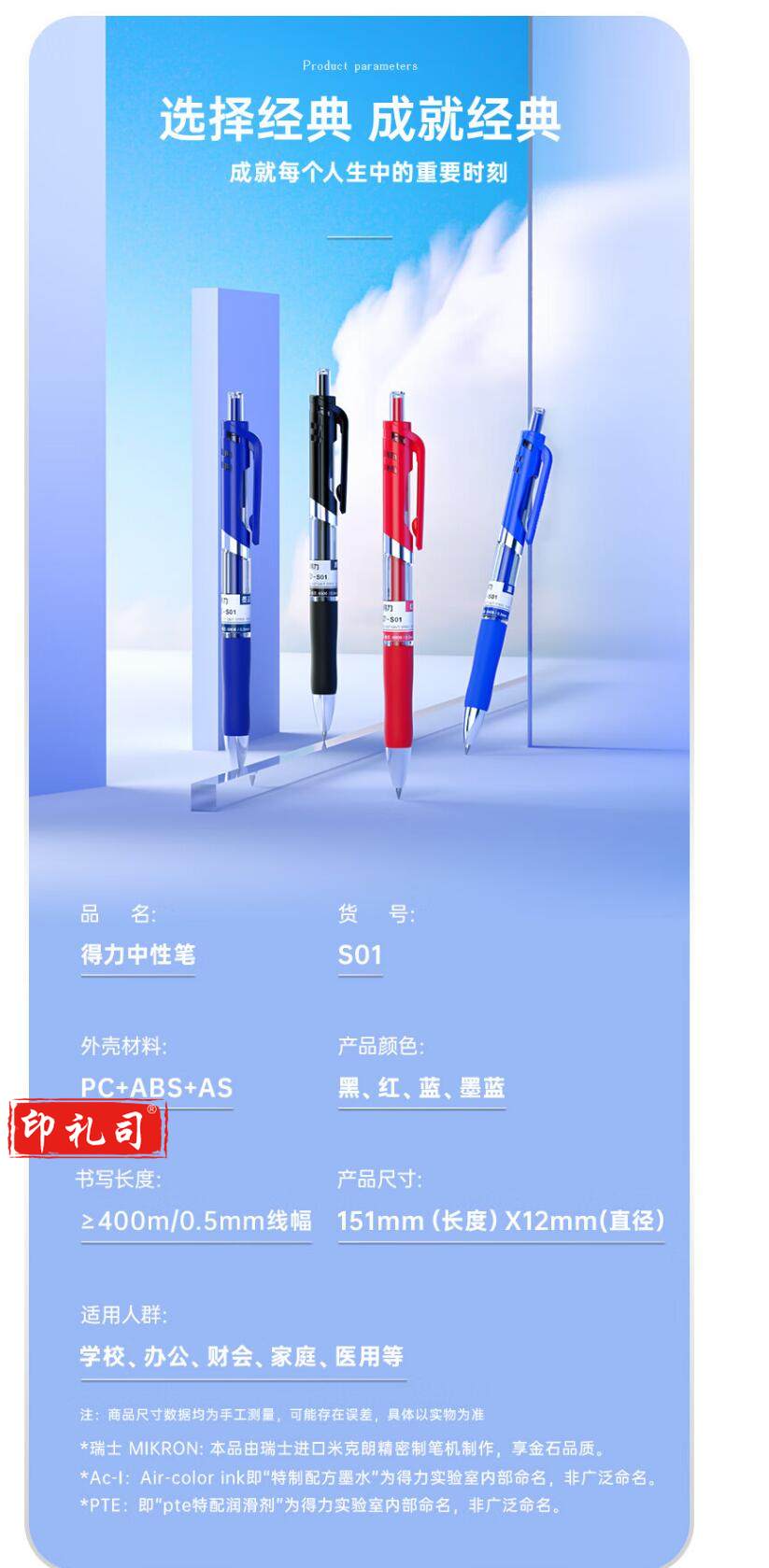 得力 S01 红色签字笔 0.5mm按动中性笔子弹头(12支/盒)