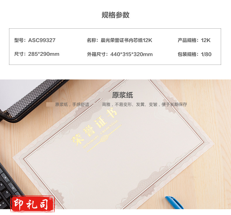 晨光荣誉证书内芯纸12K(50张/包)ASC99327