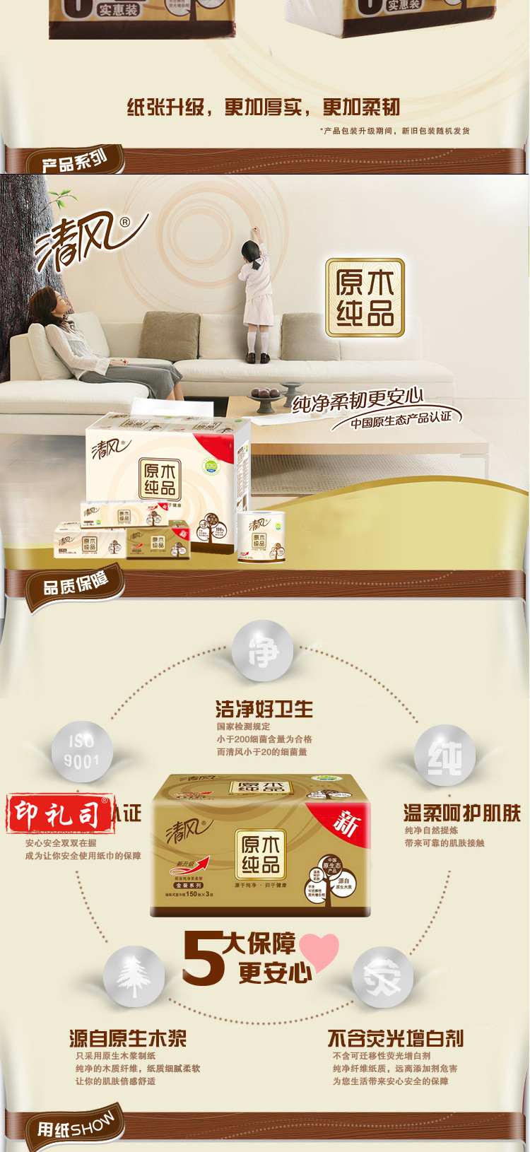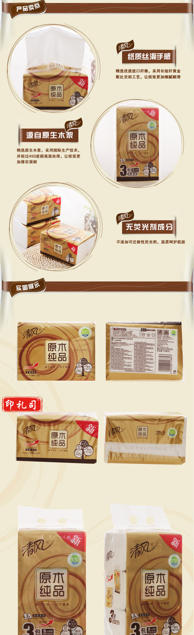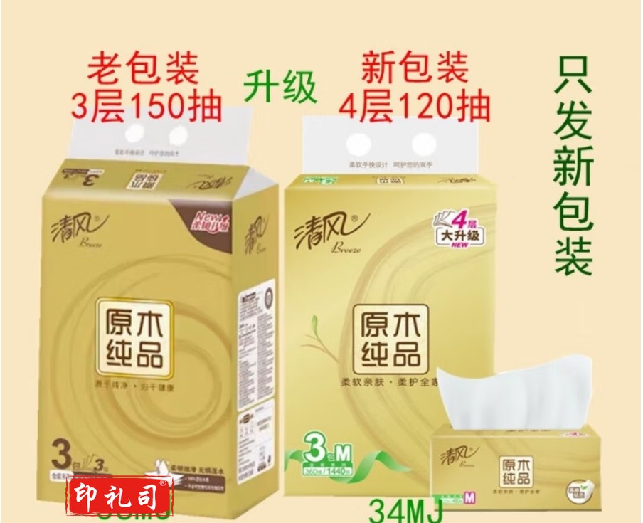 清风 金装抽纸4层120抽 3包/提 16提一箱