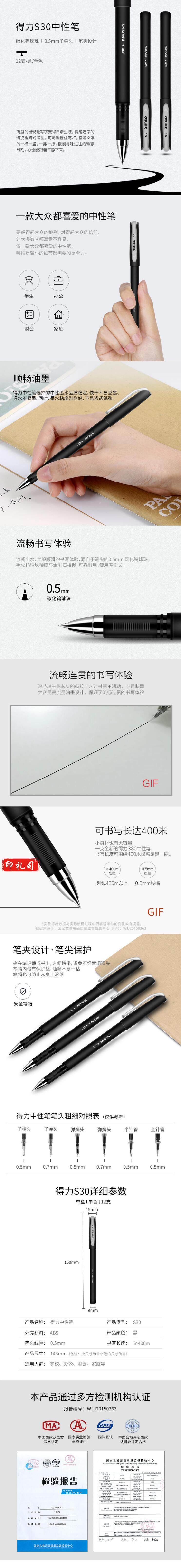 得力 S30 中性笔签字笔 0.5mm子弹头 (12支/盒)单支价格