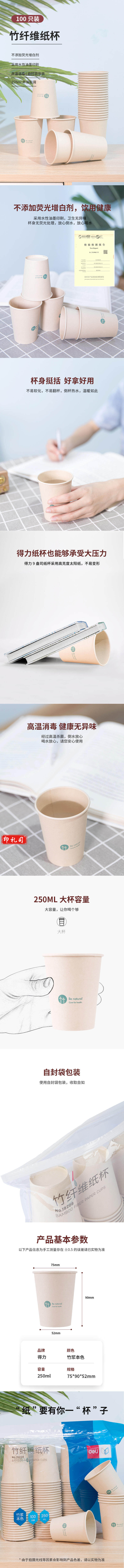 得力(deli)250m一次性纸杯 竹纤维本色纸杯子/水杯 加厚隔热 100只装 19208