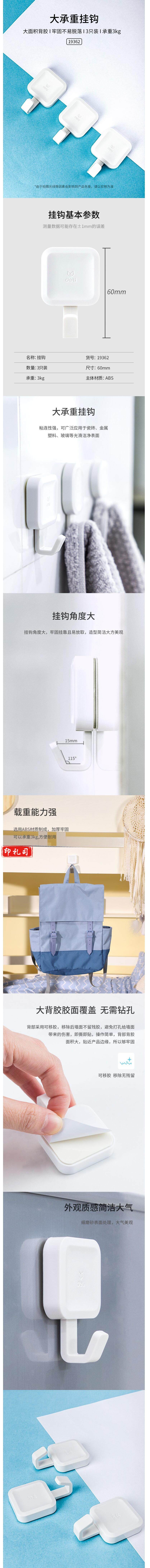 得力(deli)3kg强力挂勾浴 3只/卡大承重挂钩 浴室挂钩 免打孔粘钩 19360