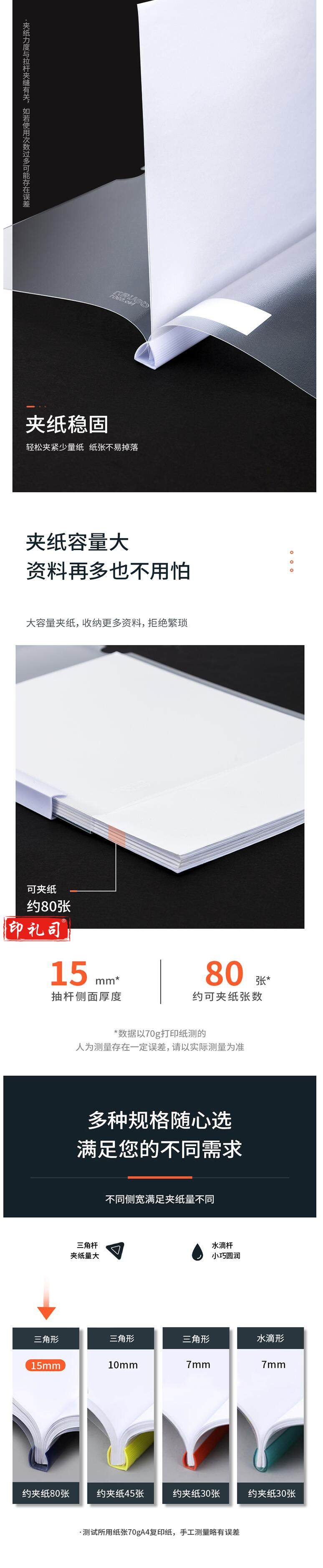 得力(deli)抽杆夹侧宽15mm拉杆夹文件夹 约夹70张5901(5只/包) 单只价格混色