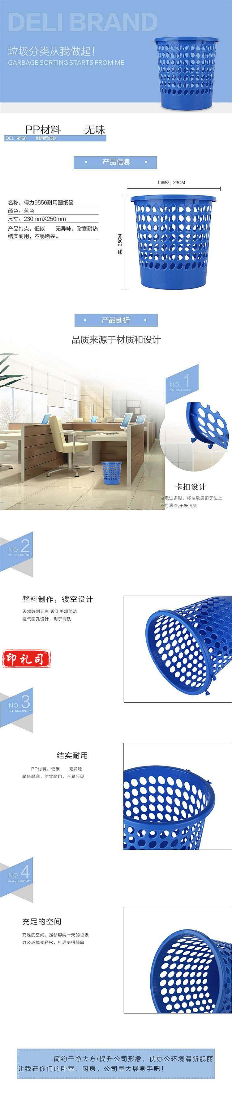 得力9556 圆形纸篓 直径24cm 垃圾篓(单位:只)蓝