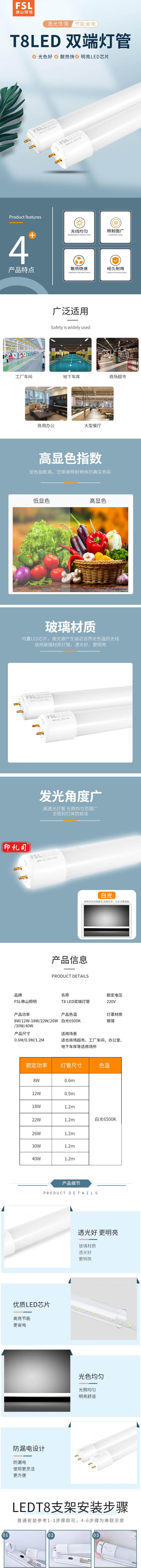 佛山照明 T8灯管24W LED双端长1.2米日光色6500K22W升级款