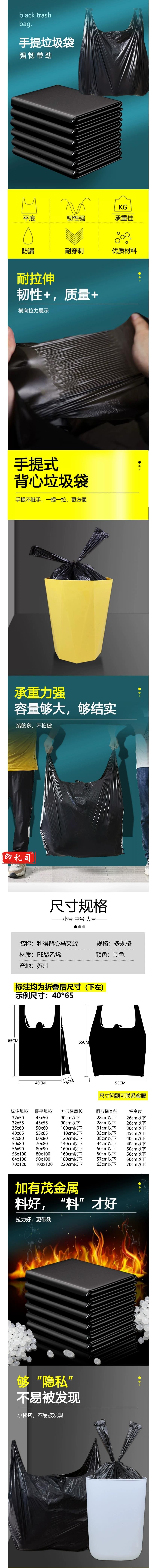 家用手提式垃圾袋 加厚黑色清洁袋 56*90cm 50只/包 货号:JC