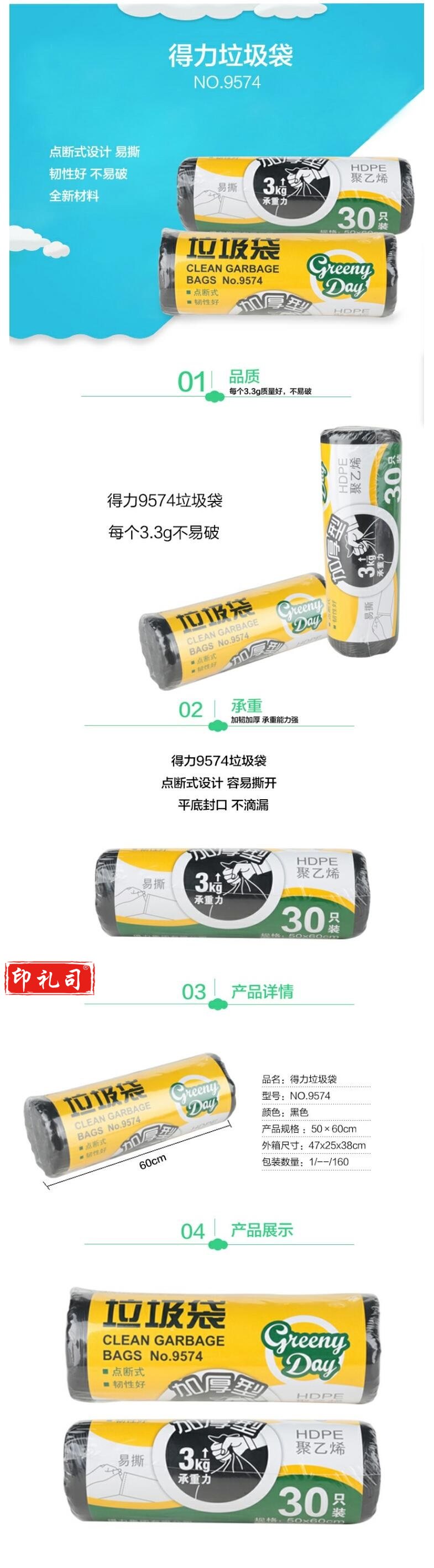 得力9574垃圾袋(黑)50*60cm(30个/卷)八角底