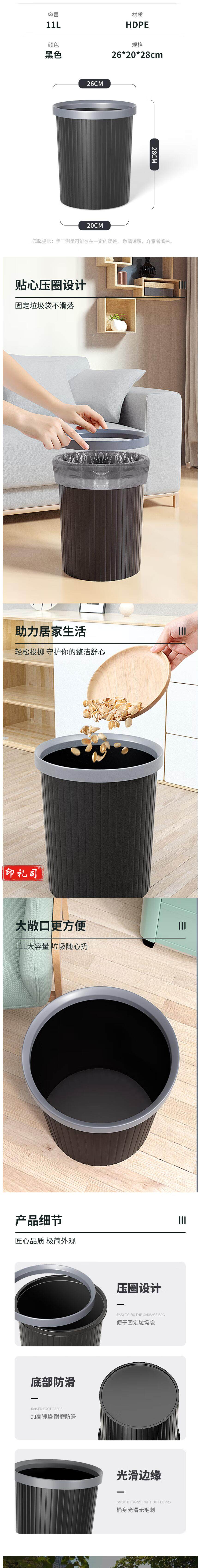 宜家 压圈式 纸篓垃圾篓 黑色压圈垃圾桶11L