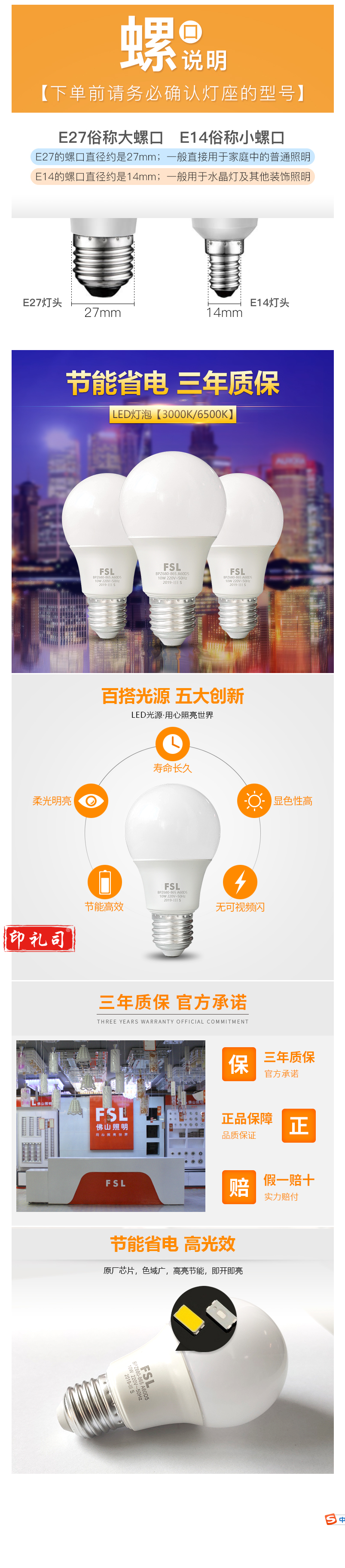 佛山照明 超炫三代 5W 球泡LED球泡/E27/6500K