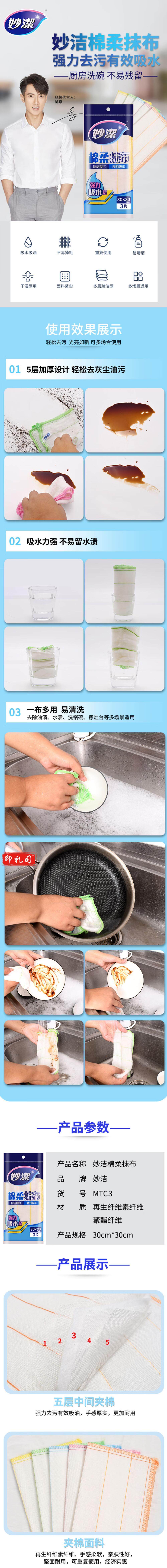 妙洁 棉柔抹布强力吸水百洁布洗碗布 3片 30CM*30CM