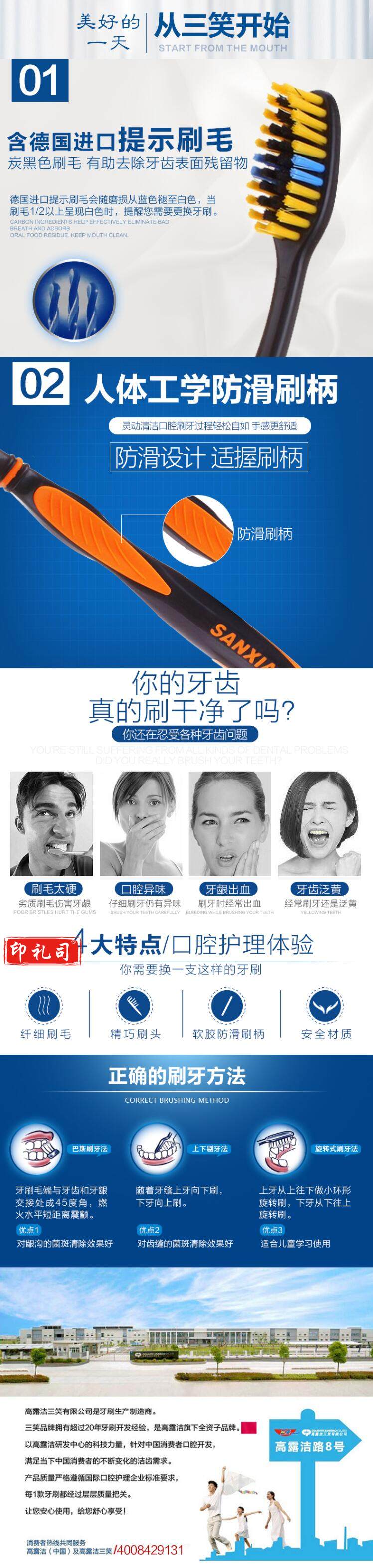 三笑 卓越多效牙刷 炭黑软毛 单只装(30只/盒)