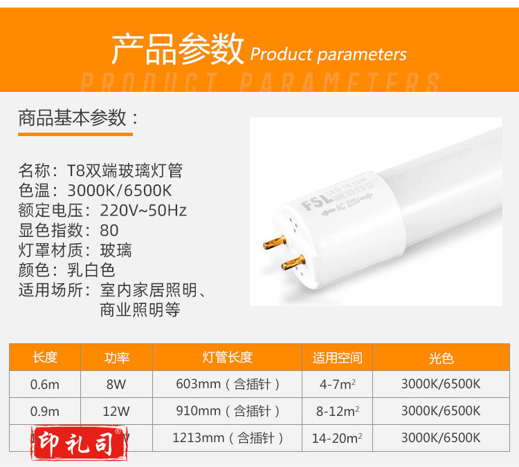佛山(FSL)LED-T8-16W灯管 暖光 1.2米 双端
