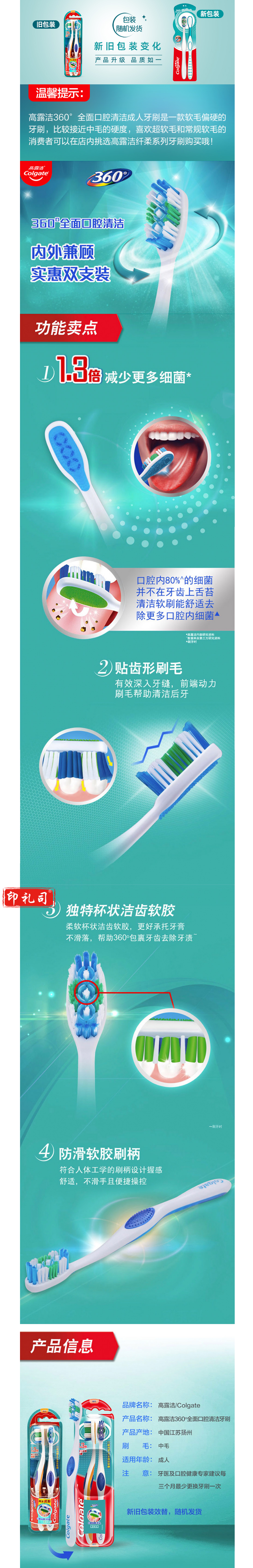 高露洁 360°全面口腔清洁成人牙刷×2支装