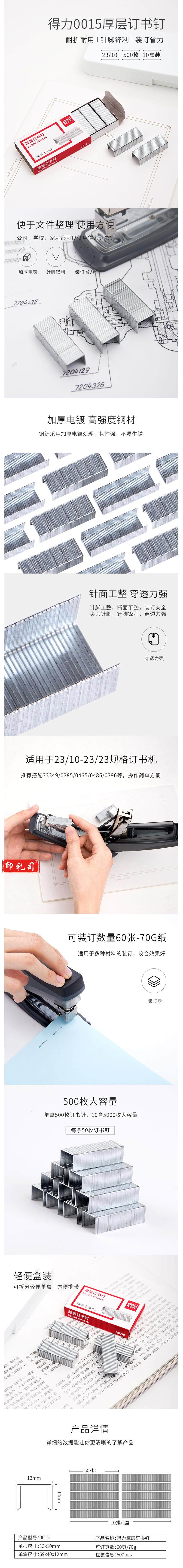 得力0015订书钉23/10厚层订书钉/订书针可订50张 500枚/盒