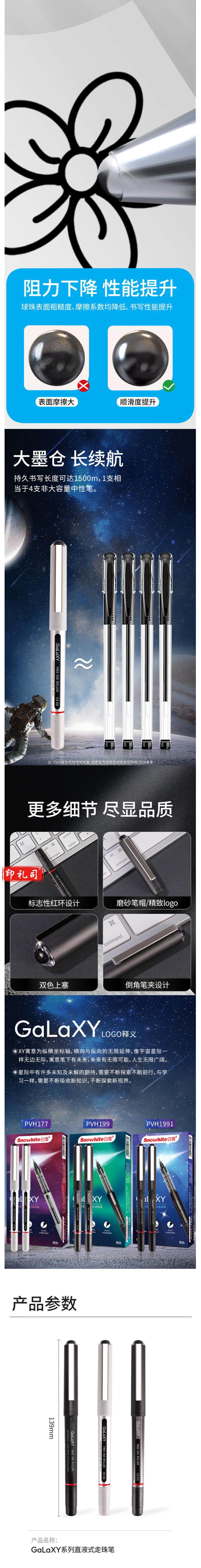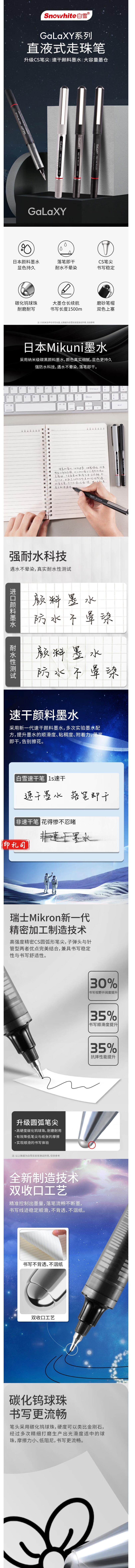 白雪 PVH177 防水直液笔速干签字笔直液式走珠笔0.5mm 12支/盒