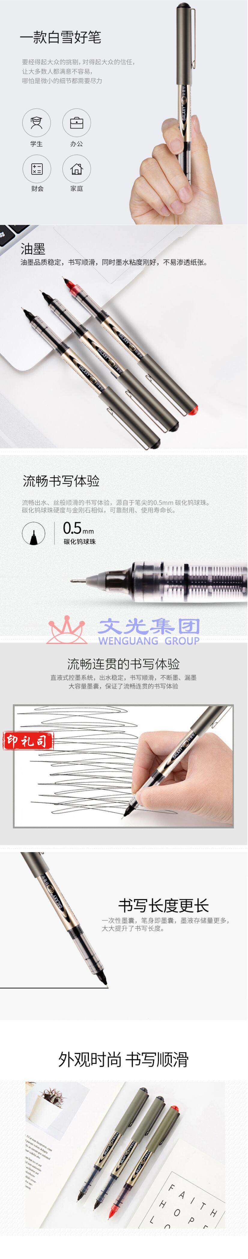 白雪 PVN-166 全针管直液笔 0.5mm中性笔直液式走珠笔签字笔黑色 12支/盒