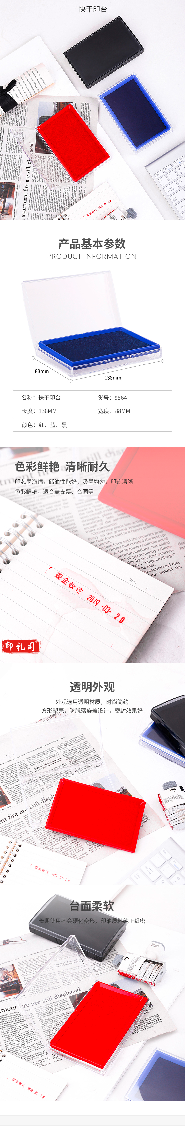 得力 印台137*88mm方形快干印台印泥 红色9864