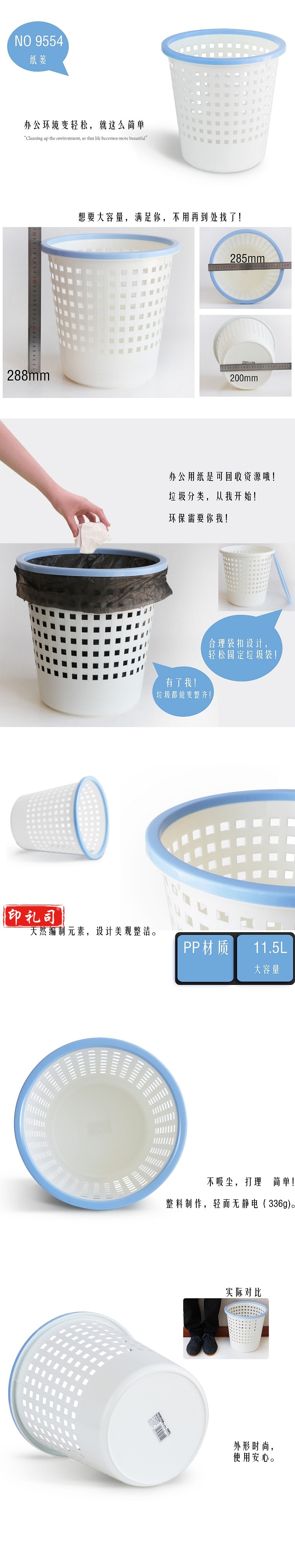得力 纸篓 Ф285mm (11.5L) 圆形压圈纸篓 办公垃圾桶 9554 蓝色